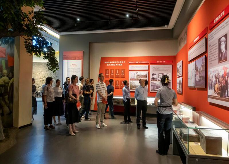 首先,大家共同参观了中国共产党合肥历史馆展厅,作为合肥市首个全党史脉络红色历史场馆,中国共产党合肥历史馆按照新民主主义革命时期、社会主义革命和建设时期、改革开放和社会主义建设新时期、中国特色社会主义新时代等四个历史阶段依次铺陈,以新思潮在合肥的传播为源起,通过大量文物、展板等媒介,展示了崔筱斋、蔡晓舟、童汉章、马毛姐等近110位重要人物;通过场景雕塑、影音互动等呈现了北乡党支部创建、双河集农民暴动、合肥解放等重大事件;运用大幅空间全景展现了党和国家领导人对合肥的亲切关怀。整个历史观完整记录了合肥人民在党的领导下创造的不朽功勋和光辉业绩。通过参观学习,大家全面回顾了百年来合肥人民在党的领导下进行的伟大斗争、创造的光辉业绩,瞻仰了一代又一代合肥共产党人在推进伟大事业、实现伟大梦想的历史进程中谱写的不朽史篇,共同感受了老一辈中国共产党人为初心使命而奋斗的精神和担当。