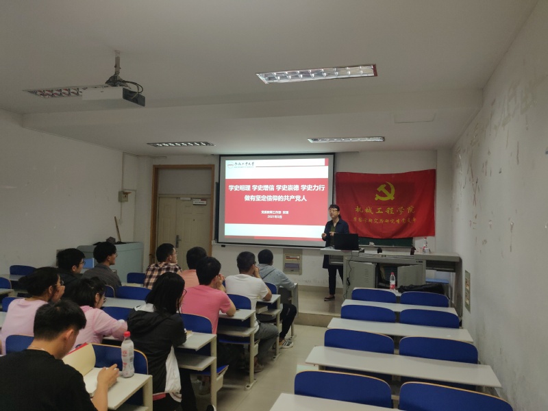 摩擦学研究所研究生党支部在屯溪路校区格物楼620开展主题为“学史明理,学史增信,学史崇德,学史力行,做有坚定信仰的共产党人”的专题党课,学校党委教师工作部副部长张瑾担任主讲人。