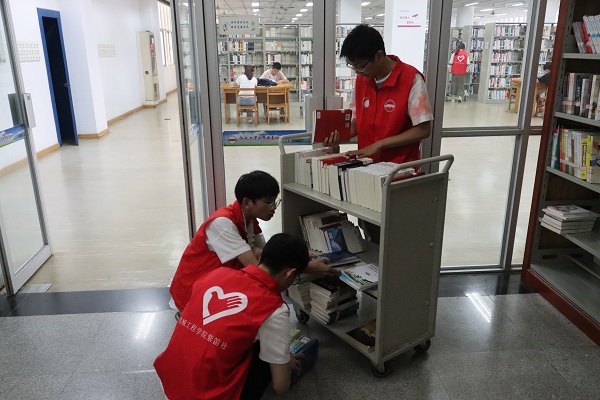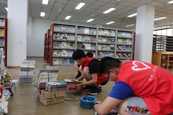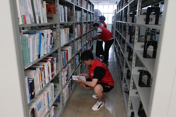 活动中,学员们在图书馆老师的指引下领取志愿活动任务卡片自行组队,针对据各组不同任务的任务内容,图书馆老师逐一进行讲解示范。随后,图书整理的同学在一排排书架之间穿梭,将摆放错误的图书重新归位;打扫卫生的同学往返于各个房间,拿着清洁工具埋头苦干;进行图书排序打包任务的同学仔细清点,互相配合将图书打包。学员们在各自的服务岗位上各尽其职,认真、高效地完成了自己的任务。最后,党校学员们在馆内读书角集中阅览党史书籍,了解红色文化,学习党史故事,共同助力营造图书馆内良好的阅读氛围。