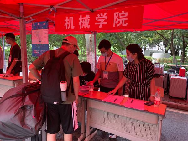 迎新工作小组在格物楼316和屯溪路校区北门广场机械学院迎新点提供一站式服务,入学程序简单高效,在研究生辅导员侯老师、教务员沈老师的带领下,志愿者们分工明确,有条不紊进行报到学生的行李看管、信息统计、资料收集与发放,对于新生们的各种问题,他们也是耐心的讲解,整个迎新工作紧张而有序的进行。