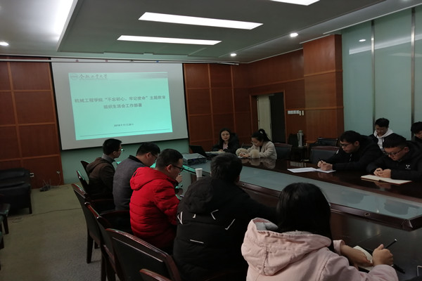 研究生党支部于格物楼308召开“不忘初心,牢记使命”主题教育组织生活会工作布置会议。研究生辅导员侯静老师主持会议,各研究生党支部书记、副书记参加本次会议。