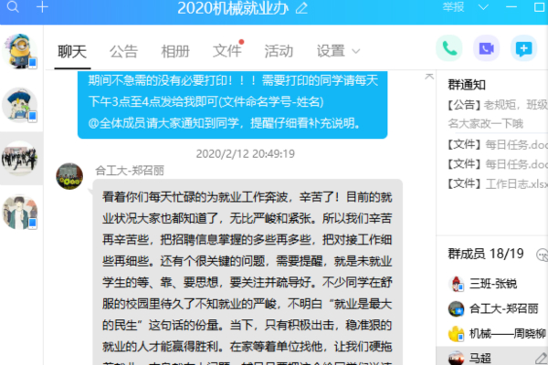 相关负责老师和毕业班就业助理最近这段时间通过视频会议、就业群热烈地讨论安排着这个问题。从年后开始,学院认真谋划、梳理重点难点工作、优化工作模式等,为毕业生提供周全服务,注重将学生需求和企业动向系统考量,推进网上招聘信息库建立和就业指导统筹落实,为就业“加油”。