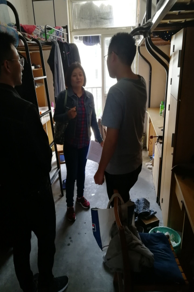 三个年级的研究生宿舍进行安全卫生大检查。在检查过程中,侯静带领学生骨干们着重检查了洗手间、阳台、桌柜等卫生死角,多次嘱咐打扫时要注意细节问题,同时还关切的叮嘱同学们要注意多通风,勤晾晒被子衣物等,注意防止疾病的传播。在检查过程中,侯静也和同学们亲切的交谈了学习和生活等方面的话题,排查了研究生校外住宿的情况。