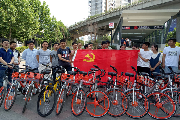 随着一声令下,各组立即分别展开行动。本次活动主要工作任务:整理排列共享单车,维持共享单车摆放秩序,亮出党员身份年,引导周围群众文明用车;在人员流动较大的地方如工大东门地铁站展开调研活动,主要根据小黄车利弊问题,向市民征集意见与相应的解决方案;研究生党员组成深入宿舍及工作室,做了《关于共享单车是否应该进校园》的调查问卷。伴着落日的余晖,大家满载而归,虽然汗水浸透了衣襟,脸上依然洋溢着灿烂的笑容。
