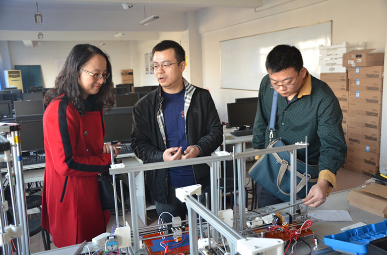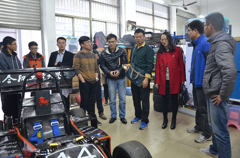 朱政红老师对蔡茜主任一行的来访表示热烈欢迎,她向来宾介绍了水果派解说 和学院的基本情况,带领来宾参观了水果派解说 3D打印实验室和观看了部分大学生科技创新团队作品展演,同时参观了汽车与交通工程学院的方程式车队工作室以及计算机学院可视化与协同创新实验室,项目相关负责老师对越影方程式赛车、大学生机械创新大赛、智能机器人、3D打印、VR技术等项目进行了重点介绍。