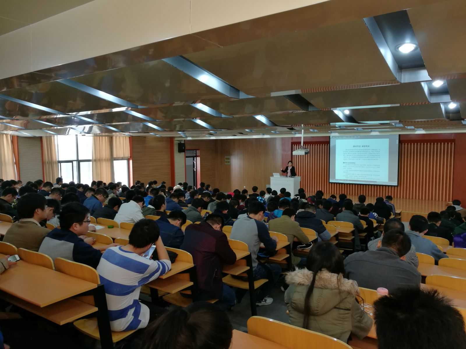 会议开始,侯静老师首先向大家介绍了当前学院学风建设和考风考纪宣传教育工作,同时带领大家学习了学校党委学生工作部下发的题为《遵纪守法 诚信考试》文件,让同学们了解与考试相关的法律法规,介绍了学校对于作弊行为的处罚(包括取消硕士学位、作弊行为记录入档等),同时也介绍了几种常见的作弊行为,为同学们敲响了警钟。