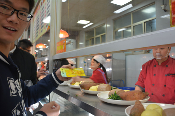 17日中午,活动正式开始,领到饭票的同学有序的前往的“忆苦思甜饭”窗口领取窝窝头、拌茼蒿、荠菜汤等“长征饭”,并在指定就餐区域就餐。活动中,同学们一边吃着“长征饭”,一边观看长征纪录片,从味觉到视觉深入的体悟那段艰苦岁月。工作人员还给就餐的同学们发放了本次活动的纪念徽章,并对部分同学进行了采访,有同学在采访中说道:“我们今天所吃的‘长征饭’比起平时所吃的食物确实差了不少,但比起革命先辈们所吃的皮带,树皮好了不知道多少倍,也正是先辈们承受了这样的苦难,才换来我们今天的幸福生活,我们要更加珍惜现在的生活,发扬长征精神,为更好的明天而奋斗。”在场的其他同学对此也深表赞同,纷纷表示“忆苦思甜”不仅在于想,更在于行动,这样纪念长征精神才有意义。