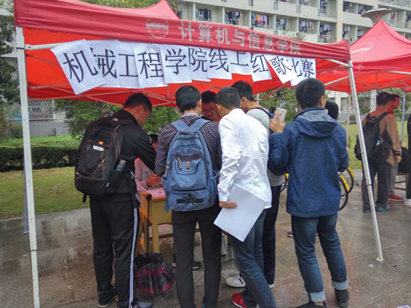 团总支在第三食堂广场进行线上红歌宣传活动,吸引广大同学参与了此次活动。