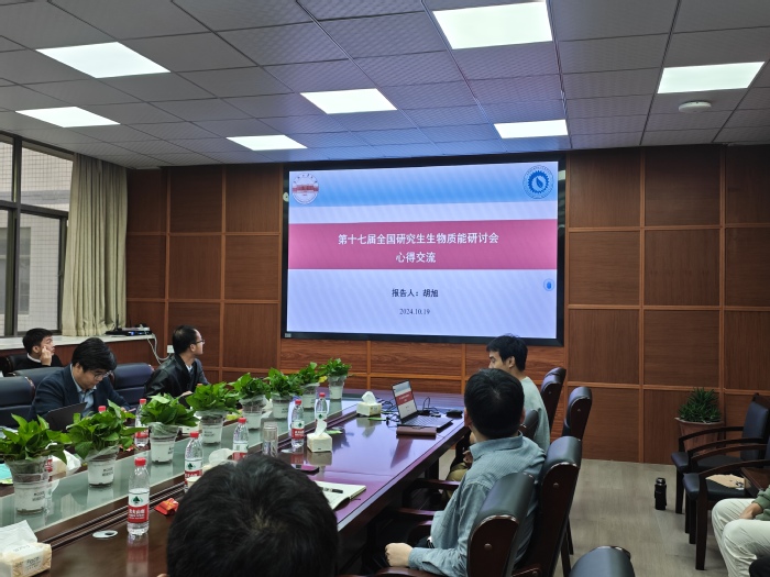 10月19日上午,李博文、陈玉、焦然、胡旭四位同学与大家进行了经验分享。李博文同学详细介绍了自己的研究成果及在研讨会中与其他高校研究生交流的情况。陈玉、焦然、胡旭同学则分享了自己在研讨会中的所见所闻及对生物质能领域未来发展的展望。他们表示,通过参加此次研讨会,不仅拓宽了自己的学术视野,还结识了许多优秀的同学,为今后的研究工作提供了新的思路和方法。
