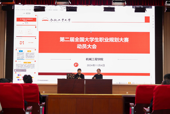 于11月5日晚在科教楼二楼报告厅举行职业规划大赛动员培训活动。2024级辅导员左旭、张景晗以及500余名同学参加了此次大会。