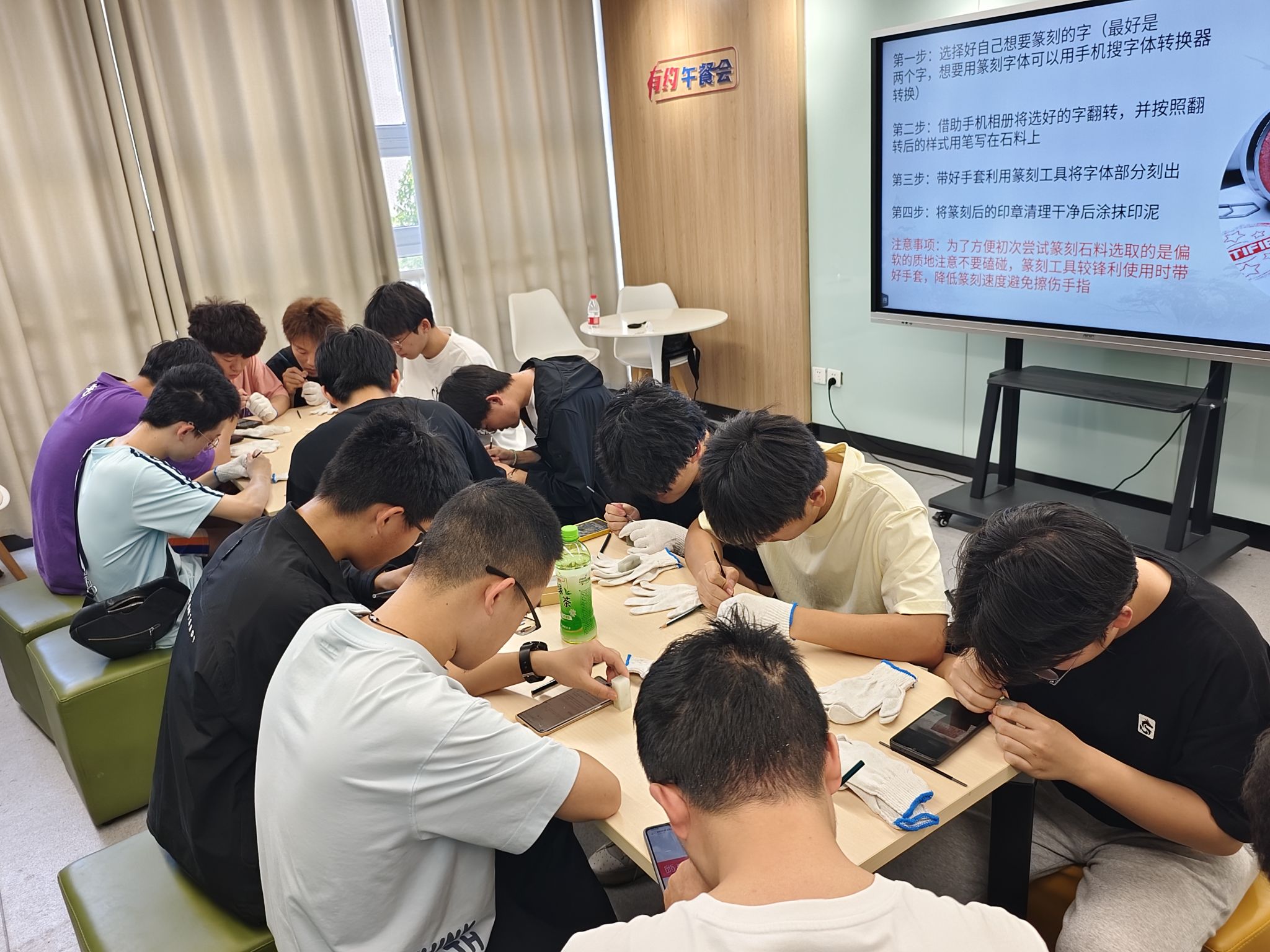 大学生发展辅导中心主办的“‘印’证心灵,雕琢时光”印章主题活动在翡翠湖校区二号楼沙龙空间成功举办,15名机械学院低年级学子共赴这场传统文化与心灵减压的奇妙之旅。