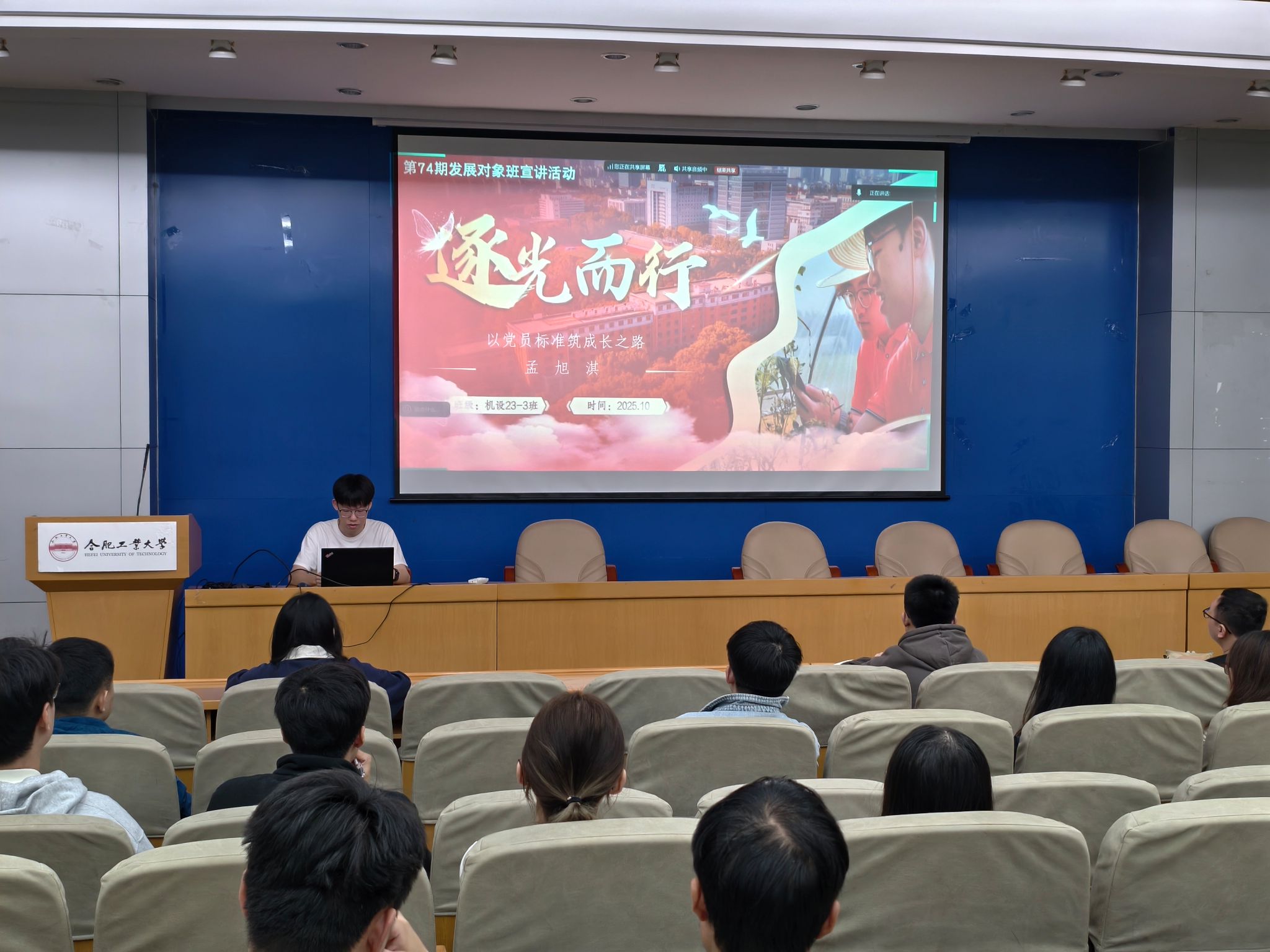 第74期发展对象班举办了以“榜样力量引前行,赤诚初心向党心”为主题的研讨交流会。活动邀请中共预备党员、校十佳社会公益标兵孟旭淇同学作专题分享,旨在通过榜样的引领作用,激励全体学员坚定理想信念、锤炼能力本领,以实际行动积极向党组织靠拢。