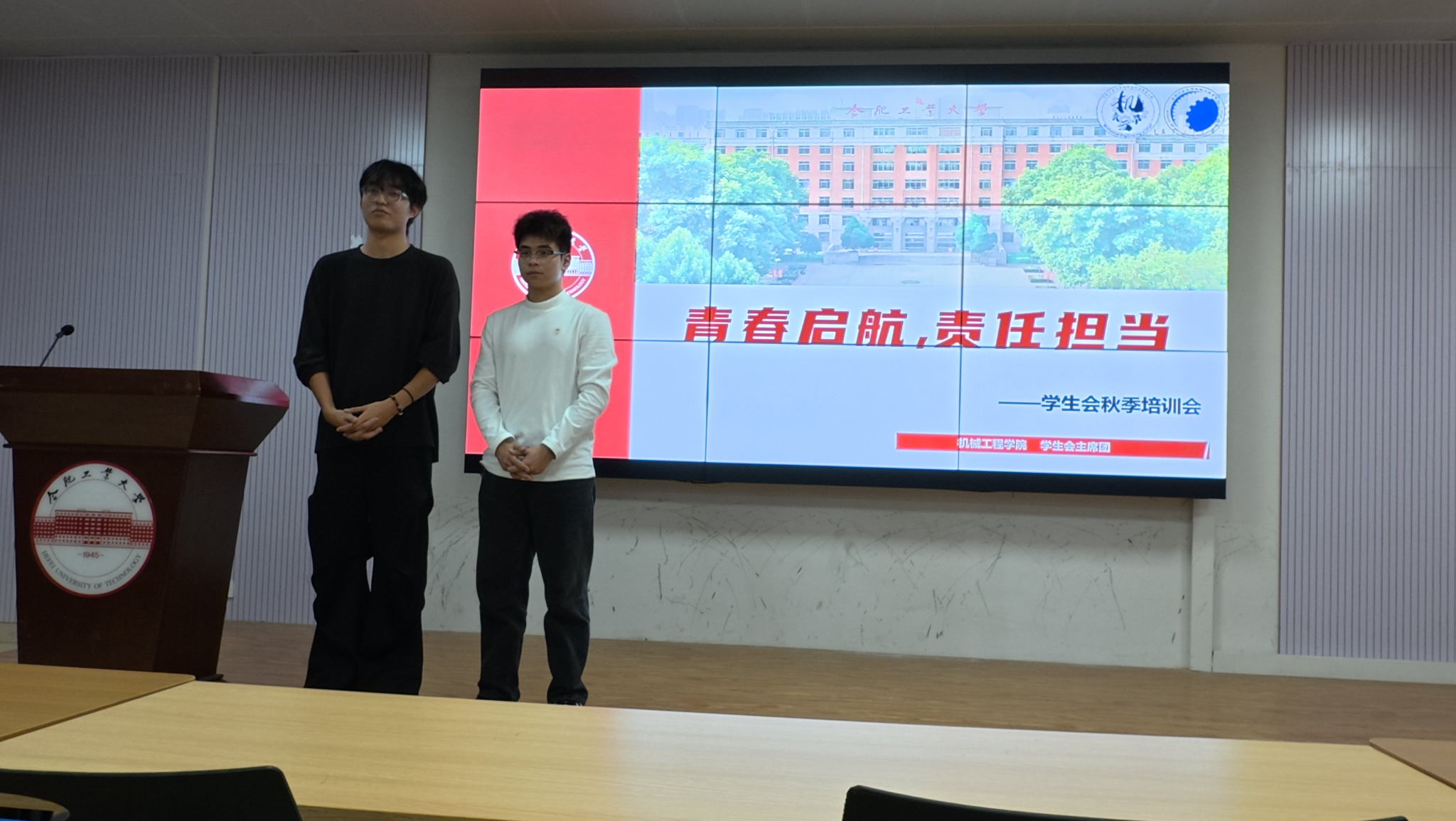 学生会在学院报告厅举办“青春启航,责任担当”新生骨干秋季培训会。本次培训会由学院学生会主席蔡礼晋、柳子豪共同主持,全体大一新生学生会工作人员参加。