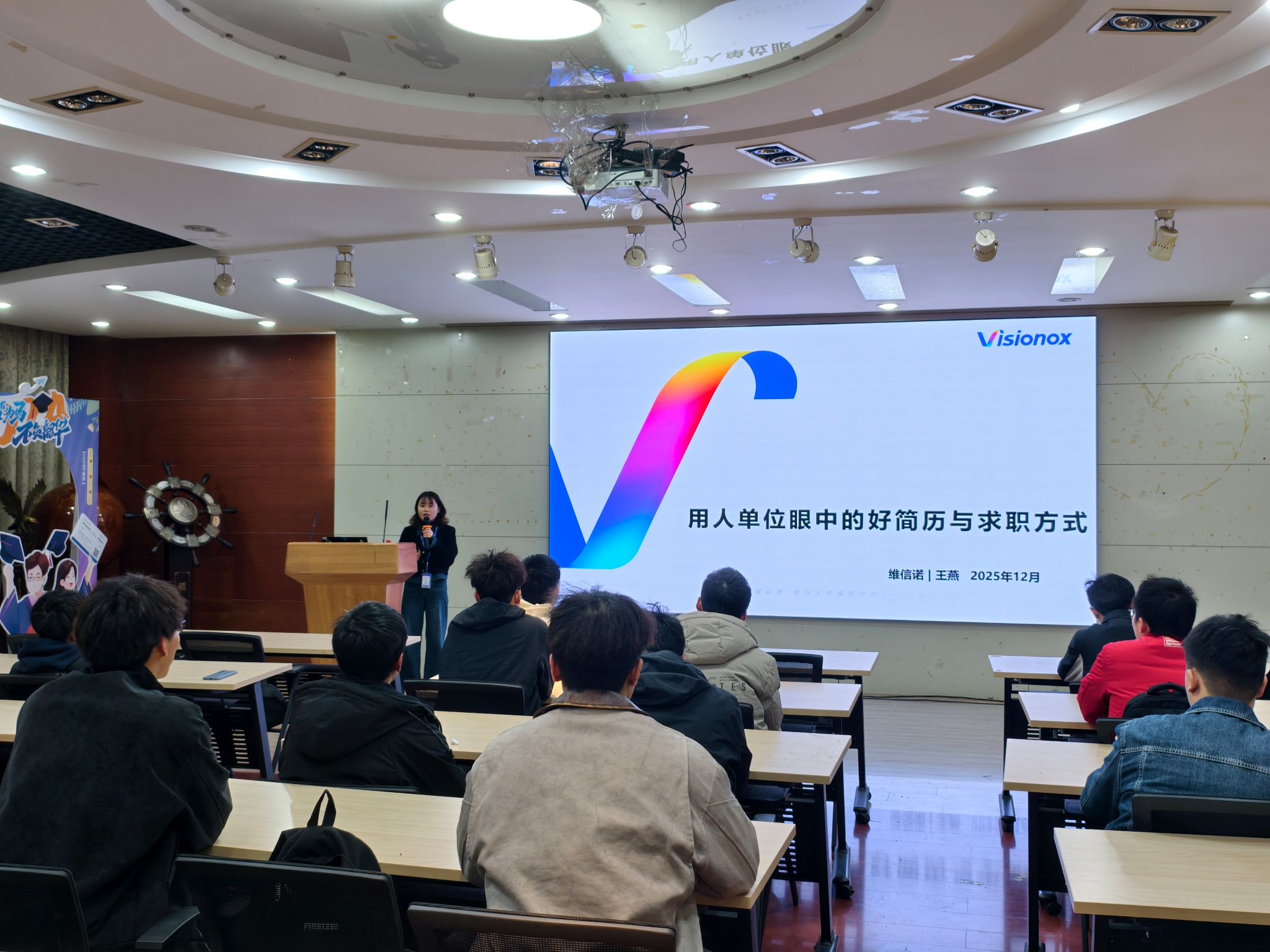 在格物楼316成功举办“职场有约”就业指导主题工作坊。本次工作坊邀请维信诺公司新产线人力资源经理、合肥区域校园招聘负责人王燕担任主讲,围绕“用人单位眼中的好简历及求职方式”展开分享。