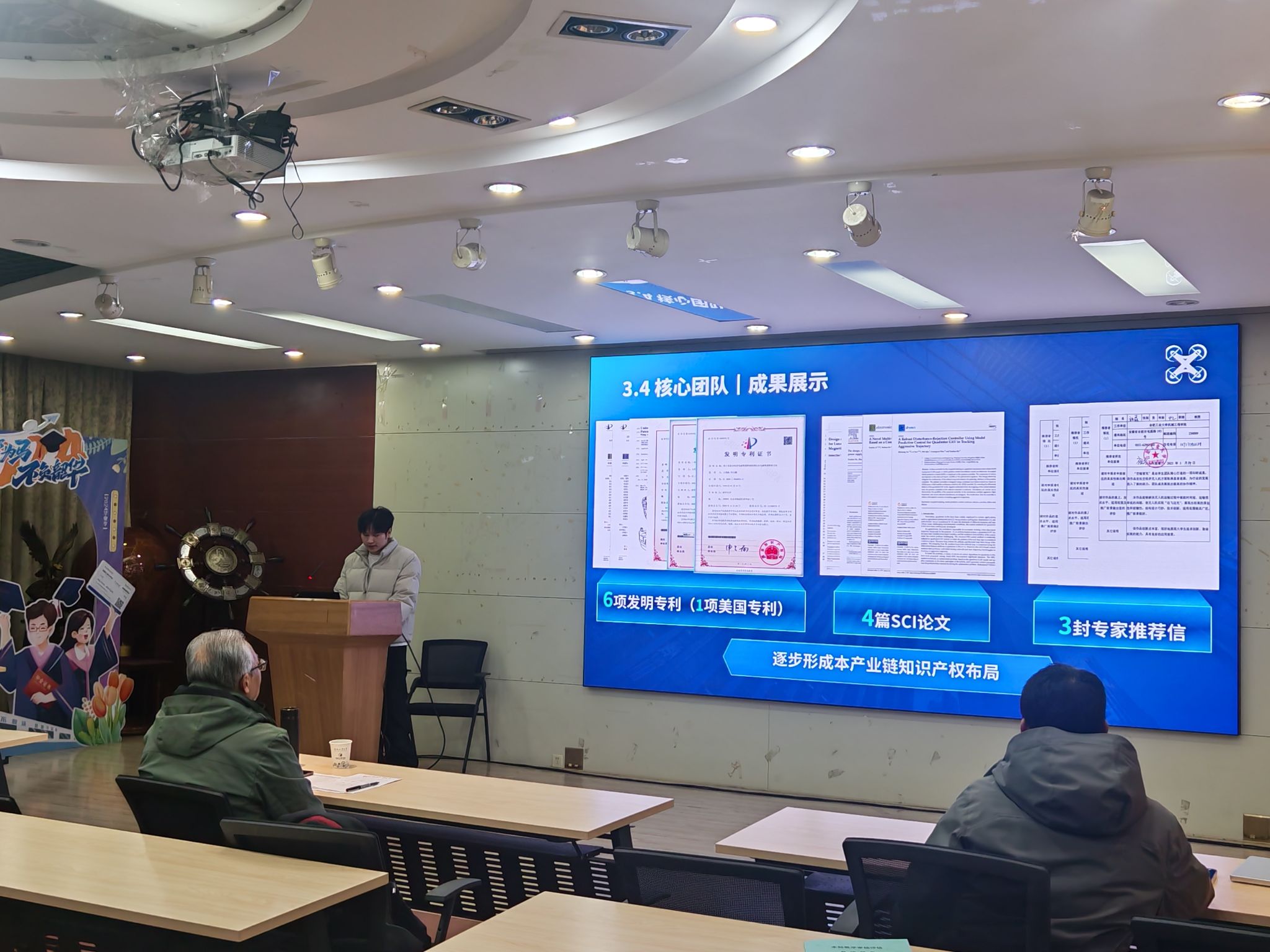 决赛现场,各队伍结合社会发展背景,充分展示了项目成果及未来规划,各评委老师也相应给出了指导性的建议与评价。其中,“穗火薪能——科技云台守护粮食安全,智慧干燥赋能农业振兴”“深澜臻测——高分辨率宽带声学全息成像系统”等项目,表现亮眼,引起激烈讨论,评委老师对其功能实现方式、产品发展规划等方面提出了专业建议。本次比赛也充分展现了水果派解说