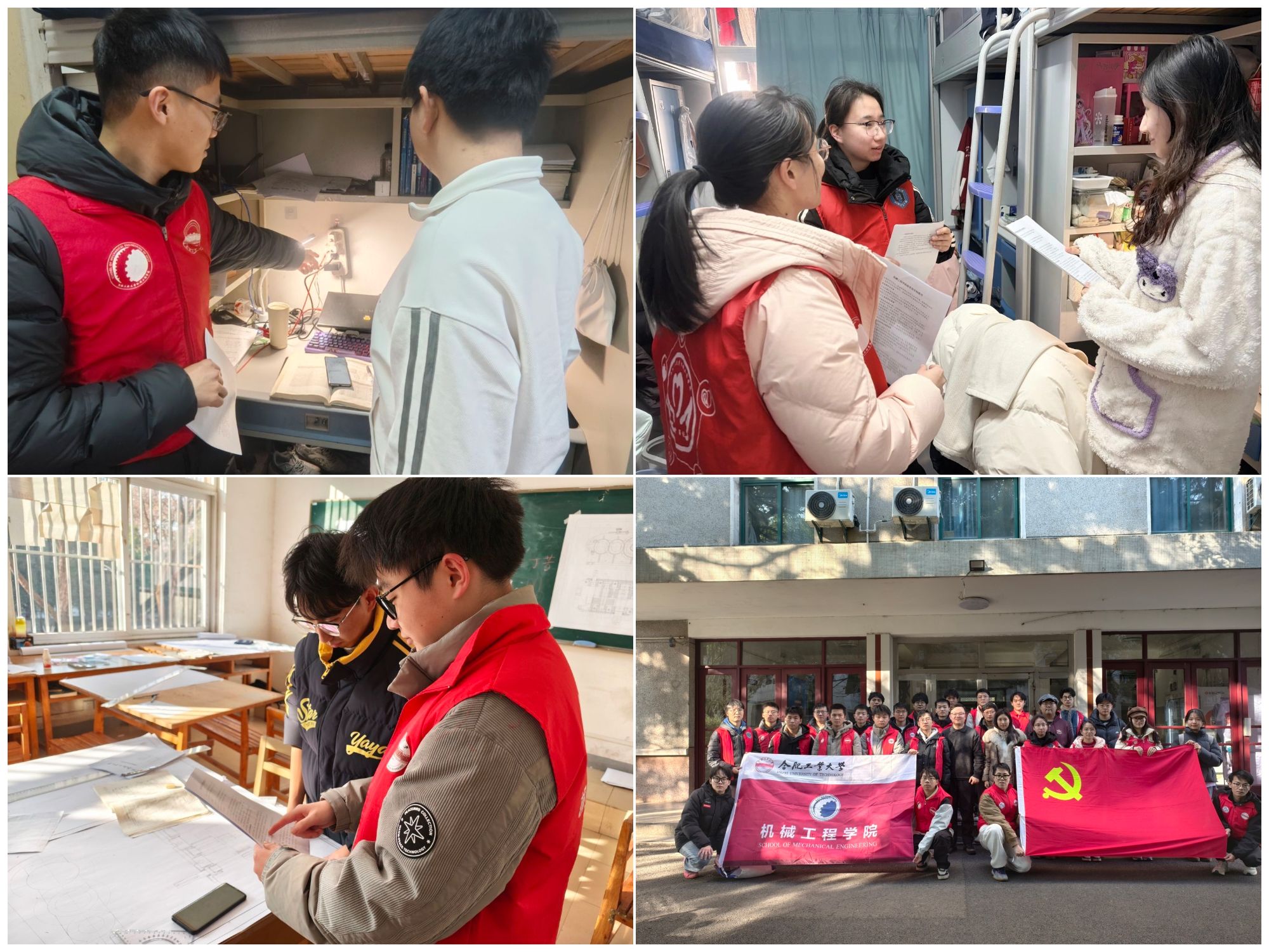活动伊始,辅导员老师结合冬季用电需求增加、校园火灾隐患增多的特点,以某高校学生宿舍笔记本电脑卧床充电引燃被褥、电热毯引发火情等真实案例为警示,讲解了宿舍火灾主要原因,重点剖析了违规使用电热器具、插线板过载串联、电气设备老化等常见风险点,为后续宣传做好铺垫。随后,宣传小队开展“一对一”进宿舍、进教室宣讲。宣讲过程中,小队围绕宿舍消防安全“红线”逐条解读,着重强调严禁使用热得快、电煮锅等大功率电器,杜绝私拉乱接电线等违规行为,同时提醒师生养成手机充电远离床铺、出门及时拔掉插线板电源的良好习惯。针对电动自行车充电安全,宣传禁止在宿舍、楼道停放充电,引导同学们前往校园安全充电桩规范充电。此外,小队还向师生普及消防栓使用步骤、安全出口及消防通道标识识别方法,细致讲解火灾逃生技巧。