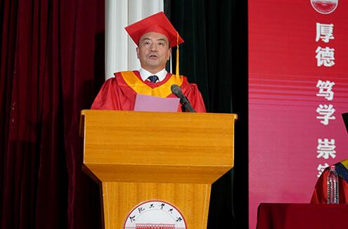 施永红代表学校向圆满完成学业并顺利获得学位的800余名毕业生表示热烈祝贺。他指出,同学们在校期间砥砺坚韧的意志,高擎希望的星火,接续奋进的力量,在仰望星空、脚踏实地中成就了更好的自己,以工大人的责任担当,积极融入学校建设发展的洪流,追随着建设国际知名的研究型高水平大学和一批世界一流学科。他希望全体毕业生以真理为依归,在矢志不渝、笃行不怠中坚定理想信念;以求是为底色,在攻坚克难、勇往直前中苦练过硬本领;以乐观为基调,在艰难险阻、世事磨砺中保持身心健康,并祝福同学们健康幸福、前程似锦。