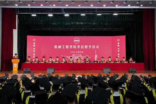 2023届毕业生学位授予情况的通知》,授予高天燕等7人学术博士学位、李东流1人非全日制工程博士学位、杨思平等133人全日制学术硕士学位、丁仁杰等150人全日制专业硕士学位、陈涛等17人全日制工程管理硕士学位、周定威等4人非全日制专业硕士学位、黄旭等522人工学学士学位。校、院领导老师为全体学位获得者扶正流苏、颁发学位证书并合影留念。