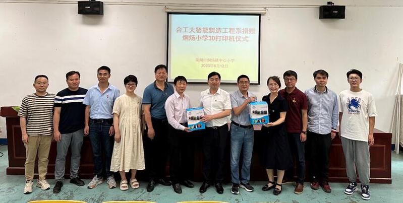 首先在烔炀镇中心小学举行了智能制造工程系捐赠烔炀小学3D打印机仪式,烔炀小学朱迎兵校长对捐赠表示衷心感谢,期盼3D打印设备能够为中小学生科创兴趣、动手能力和创新思维培养起到积极的促进作用。