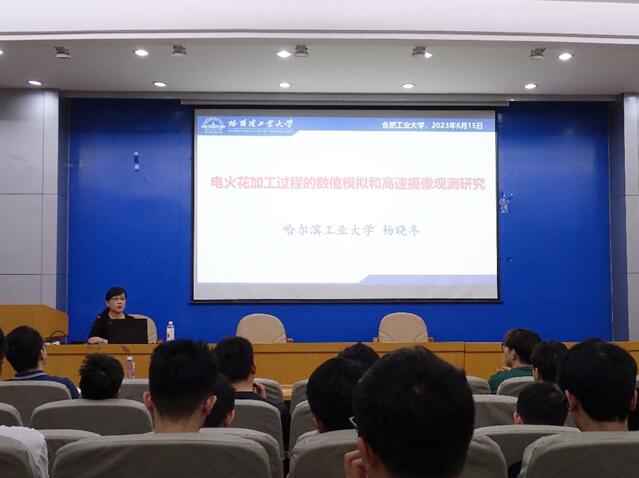 杨晓冬教授以“电火花加工过程的数值模拟和高速摄像观测研究”为题向与会师生作出精彩报告。杨晓冬教授介绍了其研究团队在电火花加工机理方面的研究经历,讲述了放电蚀除过程的分子动力学仿真、放电通道的多物理场耦合仿真、放电凹坑/放电通道的集成仿真和极间放电现象的高速摄像观测等方面的研究进展。参会学生与杨晓冬教授就电火花加工放电通道的可控机制等问题进行了讨论和交流。