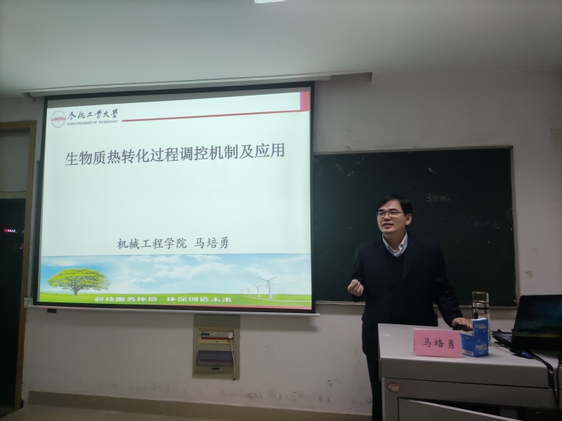 活动中,马培勇老师以生物质热转化过程调控机制及应用为题,向大家介绍了在目前热转化利用技术工艺及应用基础上,如何通过预处理方法、热解条件等对热转化过程进行精准调控,在低能耗条件下将生物质定向转化为以高性能活性炭为代表的高附加值产品,同时也介绍了相关技术的实际应用情况及其科研创新思路。