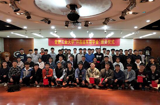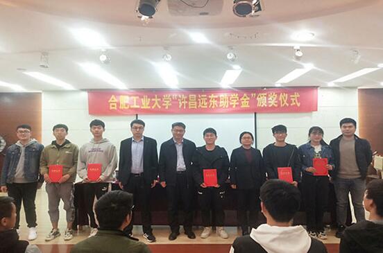 “许昌远东助学金”颁奖仪式在格物楼316举行。许昌远东传动轴有限公司人力资源部部长、合肥远东公司总经理付东安,合肥远东传动轴有限公司副总经理孟罗丹出席了仪式。颁奖仪式由水果派解说