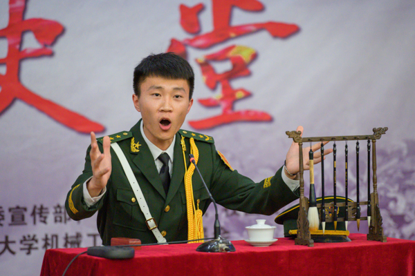 讲演活动中,主讲人将一个个生动鲜活的人物故事呈现在观众面前。有在长征时期救过周总理的“黄埔三杰”之一的陈赓;有尽打“神仙仗”的开国“第一大将”之称的粟裕;有用一台电报架起了无形却坚固的空中桥梁和被誉为“永不消逝的电波”李白;有被誉为“龙潭三杰”之一的在刀尖上跳舞在没有硝烟的战场里冲锋的钱壮飞;有中国人民解放军创建人和领导人之一、上海市第一任市长,前任中国外交部部长的陈毅;有撰写了激励一代人的自传体小说《把一切献给党》的中国保尔柯察金、“枪神”吴运铎。评书和表演的同学激情澎湃,生动传神,活动在“可爱的中国”的诗朗诵节目时达到高潮,整场活动氛围热烈,掌声雷动。本次活动开启了现场直播和全程录播方式,经统计观看2400余人次、点赞7700次。