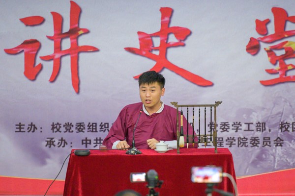 该活动是学生党支部的特色项目,从历史长河中选取一段又一段的党史故事,一个又一个的有志青年,利用评书评话方式进行演说,对在场师生进行爱国爱党教育,为筑牢“四个意识”,增强“四个自信”,切实做到“两个维护提供了基层党支部的生动案例。让我们崇敬历史,让我们牢记初心,为成长为社会主义建设者和接班人贡献青春力量。