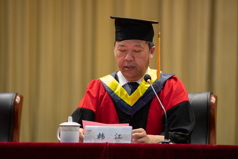 仪式在全体师生及家长起立奏唱《中华人民共和国国歌》的歌声中正式开始。在韩江老师宣读学士学位授予决定后,同学们依次上台由到场的老师为其扶正流苏并颁发学士学位证书。