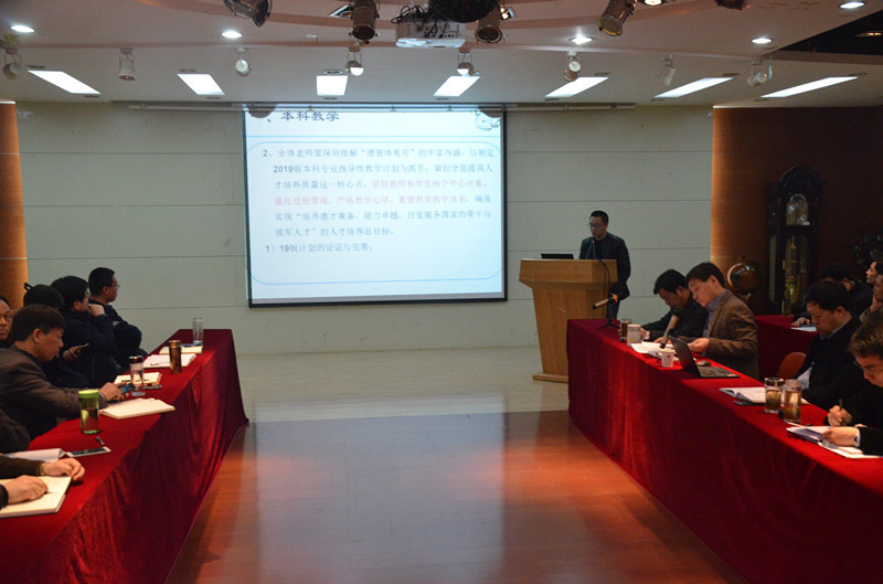 2019年工作研讨会在格物楼多功能厅召开。学院领导班子成员、教授、系所中心主任、副主任、支部书记、科级干部、教师代表参加了会议。会议由院长訾斌主持。