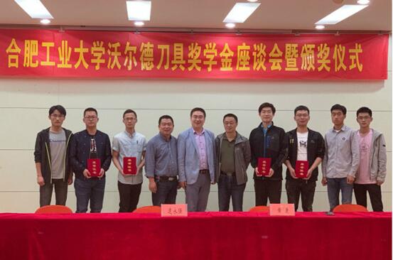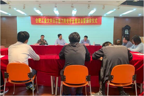 座谈会上,学院党委书记韩江对企业的到来表示欢迎,沃尔德公司人力资源总监逯永强与学院师生就“中国制造”、“择业就业”、“工业报国”等问题进行了深入的探讨。根据《沃尔德刀具奖学金评定办法》,最终评选出“沃尔德刀具奖教奖学金”优秀教师1名、优秀研究生2名、优秀本科生3名。