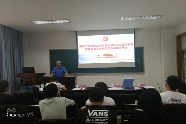 2018年基层学生党支部标准化建设验收暨党支部特色活动结题答辩会在格物楼411举行,学院党建组织员张怀良、学院副书记郑召丽、党政秘书陈华、辅导员、各学生党支部书记和学生党员代表参加了此次答辩会。