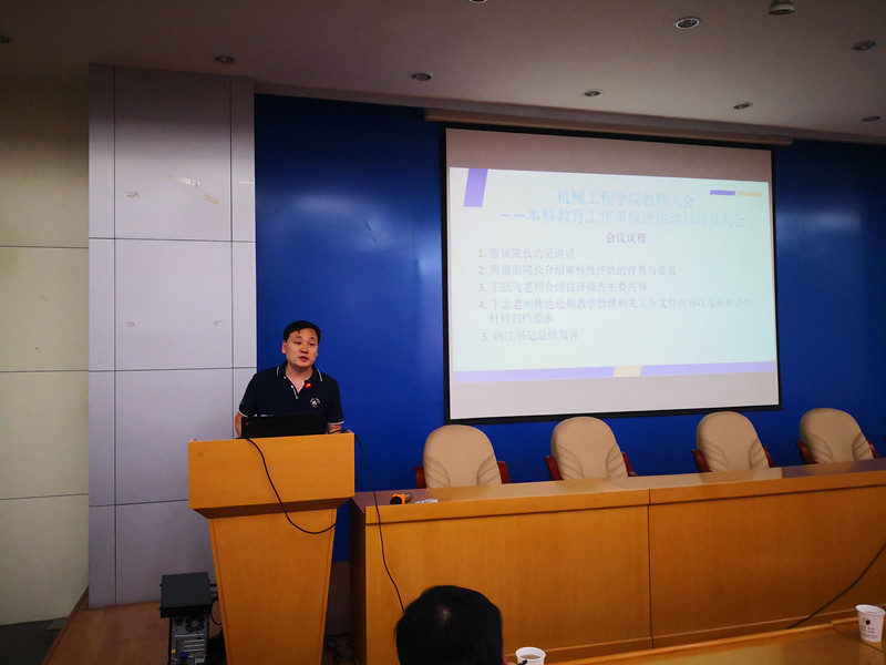 在格物楼二楼学术报告厅召开全员教师大会进行2018年本科教学审核评估动员工作,会议由黄康副院长主持,訾斌院长,韩江书记,黄海鸿副院长,左登发副院长,郑召丽副书记,各系主任以及全院教职工参加了大会。