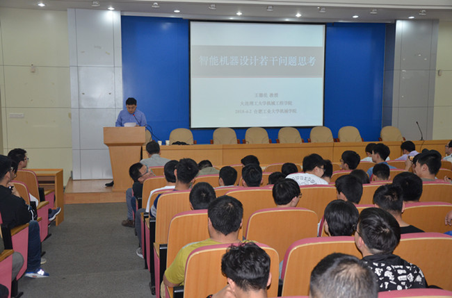 报告开始之前,訾院长先向大家介绍了王德伦教授的成就。接下来,王教授从“机构分析与综合”“精度设计与检测”和“结构与性能设计”三方面出发,结合他本人的多个自然基金项目和机床重大专项课题,向大家简要介绍了他一直以来在机构的运动几何学方面的研究工作。之后,王德伦教授以美国波士顿动力公司的招牌智能机器人“大狗”为例,重点探讨了他对于人工智能在机械设计特别是机器人领域的深入应用方面的思考。他指出,机械设计已经从数字化设计时代进入智能化设计时代,如何从内涵和组成等多个角度去理解智能机械设计的意义显得尤为重要。最后王德伦教授对智能机器人未来的发展进行了展望,他认为,智能机器人的应该具有自主生存能力,因此如何利用人工智能技术来自主获取能量或可成为机器人领域未来的一个重要研究方向。