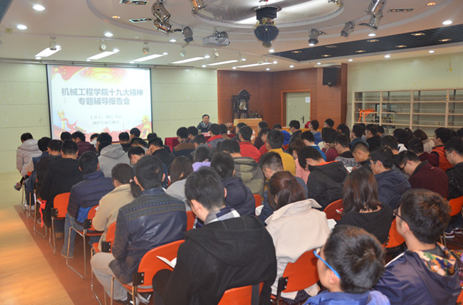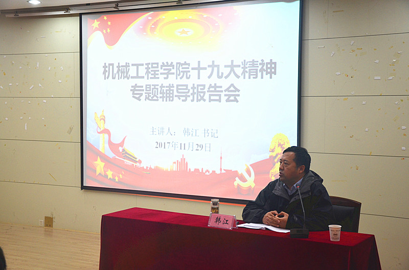 在格物楼316成功开展“我身边的十九大•书记讲主题党课”活动,该院党委书记韩江同志深入研究生学生支部,和100余名学生党员亲切交流,畅谈十九大学习感想感悟。
