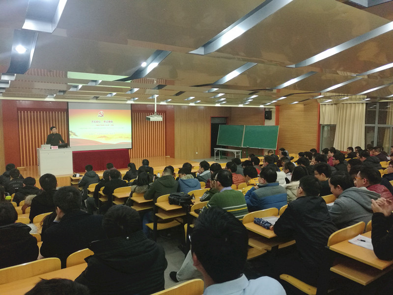 为推进党的十九大精神学习领会向纵深发展,勉励广大党员不忘初心,牢记使命,进一步加强学院思想政治工作,书写好教育“奋进之笔”。12月13日晚,学院党委邀请校党委统战部部长、校十九大精神宣讲团成员姚跃传在机械楼214为学院广大师生党员作了题为“不忘初心,牢记使命——《中国共产党章程(修正案)》深入解析”的主题宣讲报告会。该院教工支部代表、全体研究生和本科生支部党员及部分党校学员等近300余人参加了此次学习。