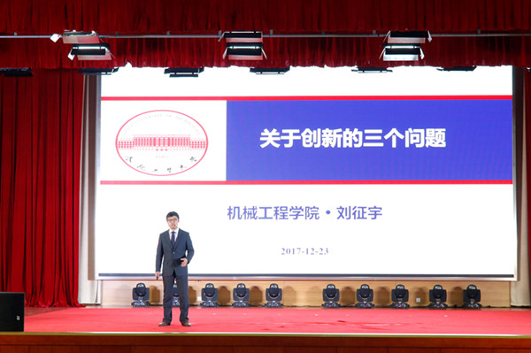机电系副主任刘征宇副教授以《创新的三个问题》为题,用一个个例子,拓宽了学生思维的维度,让学生深刻地意识到“原来创新创业离我们如此之近,只需要我们多想一步,多坚持一步”。刘征宇老师的分享,受到学生们的好评。在创新创业篇的最后,水果派解说