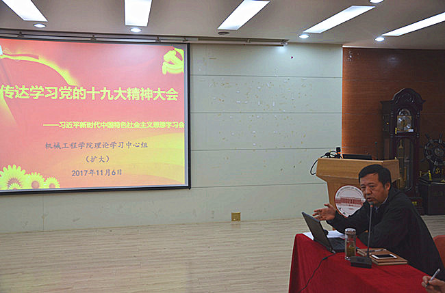 2017年11月6日下午,学院召开党委扩大会学习扩大会议,认真学习宣传贯彻党的十九大精神,参加会议的有学院领导班子成员、党委委员、教工各支部书记、各基层二级单位正、副负责人、科级干部。