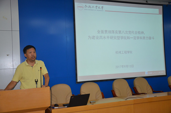 “三步走”战略,力争在建校100周年之际,机械工程学科进入世界一流学科前列,实现国际知名的研究型高水平学院建设目标,从全面加强党的建设、确保学院各项事业持续健康发展和依托学院实际、培育和强化特色、落实六大发展任务两个大的方面,就学院如何贯彻落实第八次党代会精神的措施方案进行了的详细解读和布置。