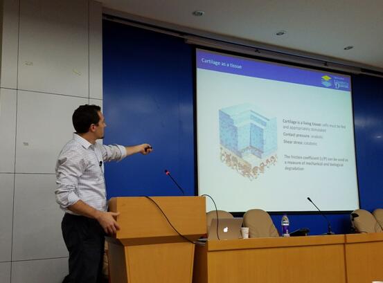 在Burris教授的报告中,师生同学不仅了解到关节软骨的润滑机制,对如何更加合理的设计实验环节也得到许多启发。整个报告会内容紧贴摩擦学研究的前沿,讲解深入浅出,持续了近一个半小时的报告赢得了在场师生的热烈掌声。 (叶家鑫 文/图)