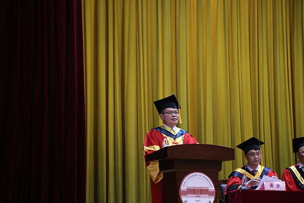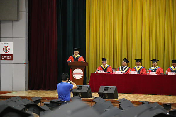 获得学士学位的同学表示热烈祝贺,并提出了殷切希望,他希望同学们要时刻不忘家国情怀,永葆创新的理念,坚持不断地学习,更要懂得感恩。希望同学们能够时刻关注母校的发展,在将来的工作生活中认真做人,踏实做事,勇于创新,成就梦想。