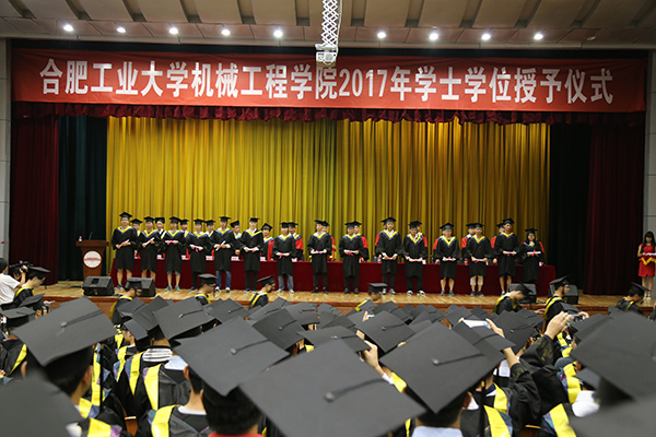 关于授予学士学位的决定》,决定授予机械设计制造及其自动化专业刘洋、马成龙、张睿、王大远等372人工学学士学位;授予工业工程专业王晓楠、王主鑫、陈明辉、张欣宇等54人工学学士学位;授予飞行器制造工程专业张昊、姜富航、郭维东等39人工学学士学位。随后,在隆重的加冕进行曲中,老师们为获得学士学位的全体学生颁发学位证书,扶正流苏,并合影留念。