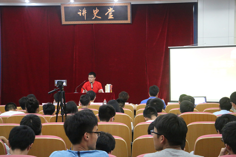 在格物楼214开讲体验式理论学习的常态文化产品“讲史堂”。党委组织部组织员王皖江、宋之帅,党委学工部、学院相关负责人参加了此次开讲活动。