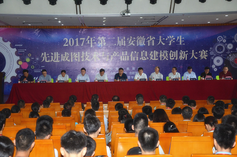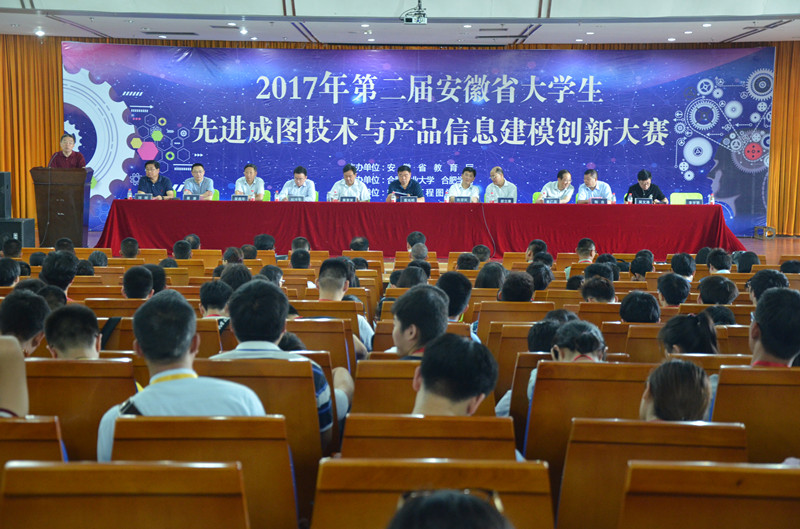 竞赛开幕式在翡翠湖校区图书馆报告厅举行。教务部部长陈翌庆、教育部高等学校工程图学教学指导委员会副主任雷光明,教务部副部长兼创新创业教育中心主任黄景荣,合肥学院创新创业教育中心主任刘沛平,安徽省工程图学学会理事长李学京,全国大学生先进成图技术与产品信息建模创新大赛组委会主任邵立康出席并致辞。开幕式由水果派解说