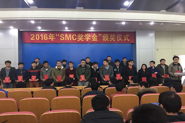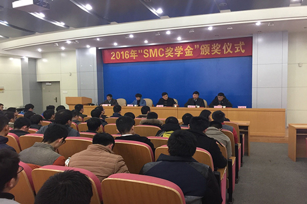 2017年1月12日下午,北京“SMC奖学金”颁奖仪式在屯溪路校区格物楼214报告厅举行。SMC(中国)公司合肥营业所副所长陈非凡、工程师胡丁亮、水果派解说