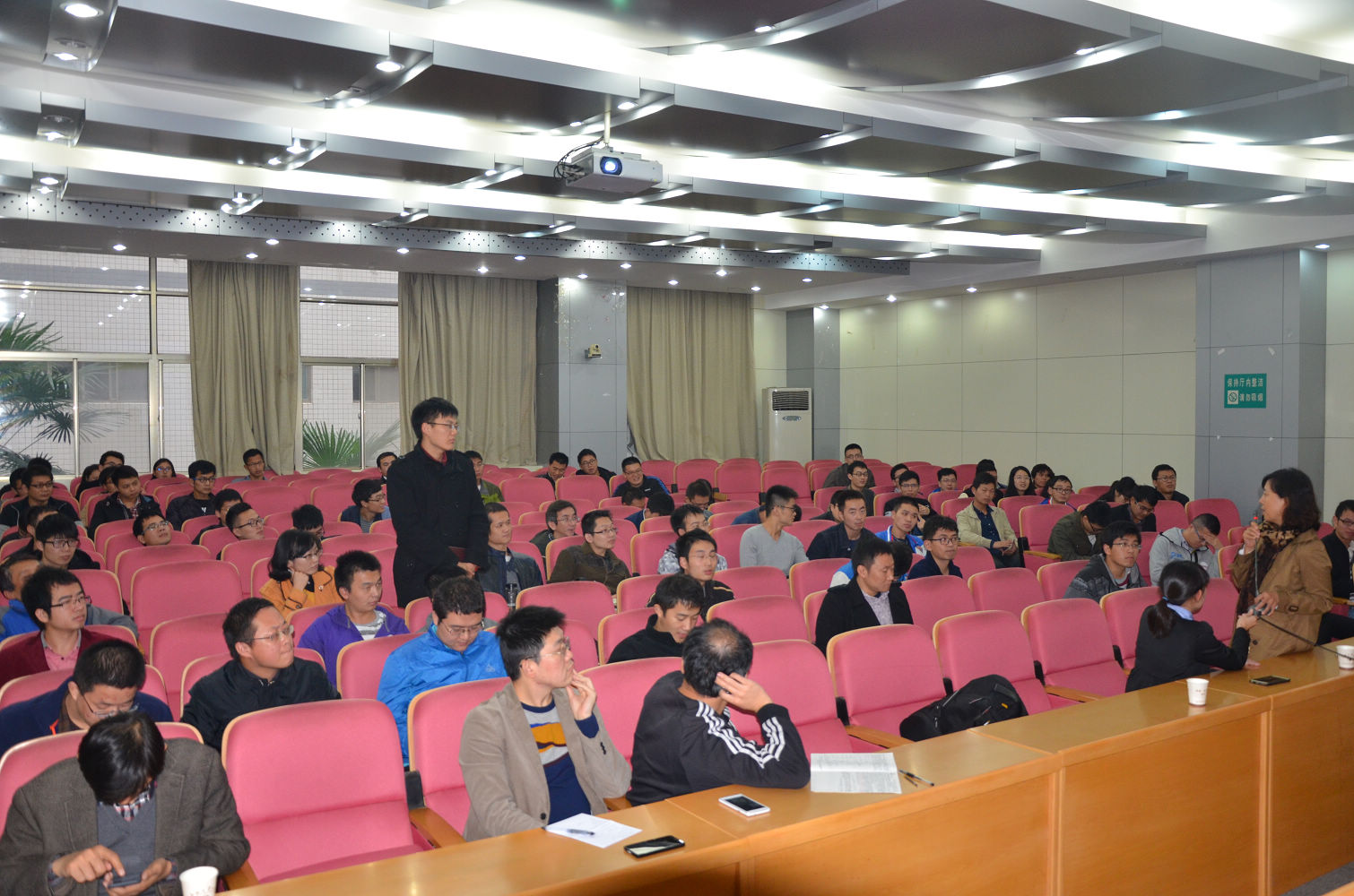 院长訾斌教授、机电系宋守许教授以及100余名青年教师和研究生参加了报告会。报告会由訾斌院长主持。