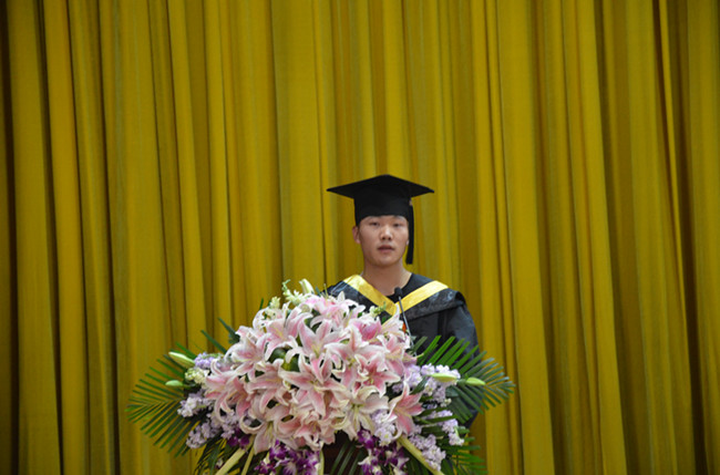 老师代表刘征宇和毕业生代表白灿分别在仪式上发言,表达了老师对毕业生的祝愿与期盼以及毕业生对母校和老师的感恩。