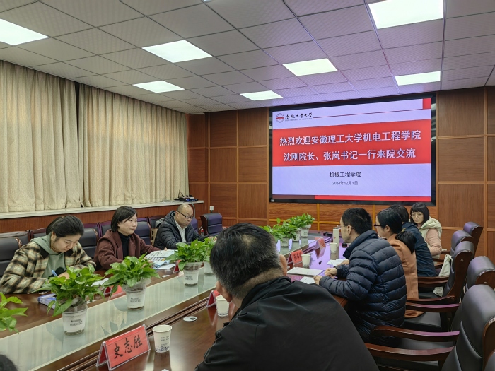 12月1日下午,安徽理工大学机电工程学院院长沈刚、党委书记张岚、办公室主任宁宁一行来院调研交流工作,学院党委书记祖磊、正处级组织员史志胜、副院长马培勇、副书记兼纪委书记蔡伟伟及相关负责老师、博士参加交流会议。