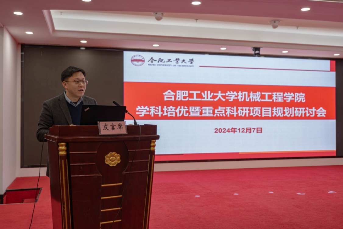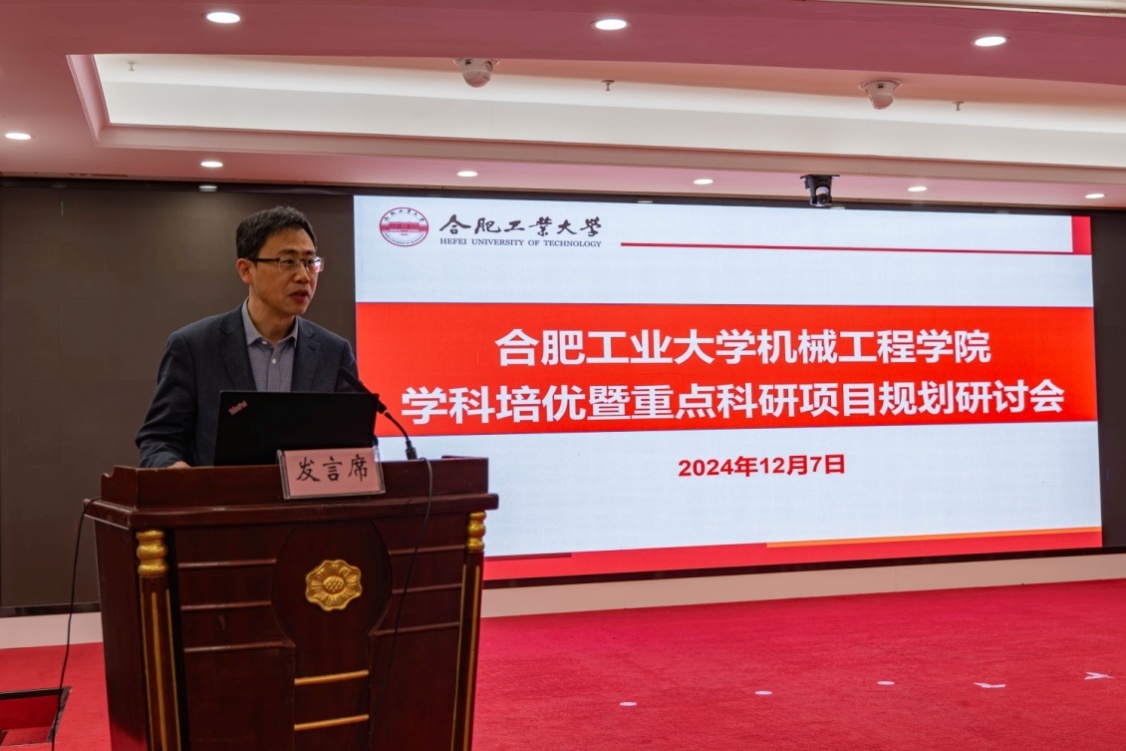 黄海鸿教授、胡献国教授、马培勇教授、郑红梅教授,分别围绕机械工程学科建设、重点科研项目规划和省科技奖励申报、教学质量提升、人才引进与师资队伍建设、国家自然基金申报、成果转化与创新创业、课程教学改革等主题进行了深入交流与研讨。最后,学院党委书记祖磊重点介绍了机械工程学科培优计划建设重点任务和绩效指标,结合校内外同类高校多维度对比分析,深刻剖析了学院学科发展当前遇到的问题和挑战,指出了机械工程学科建设下一步亟待突破的方向。