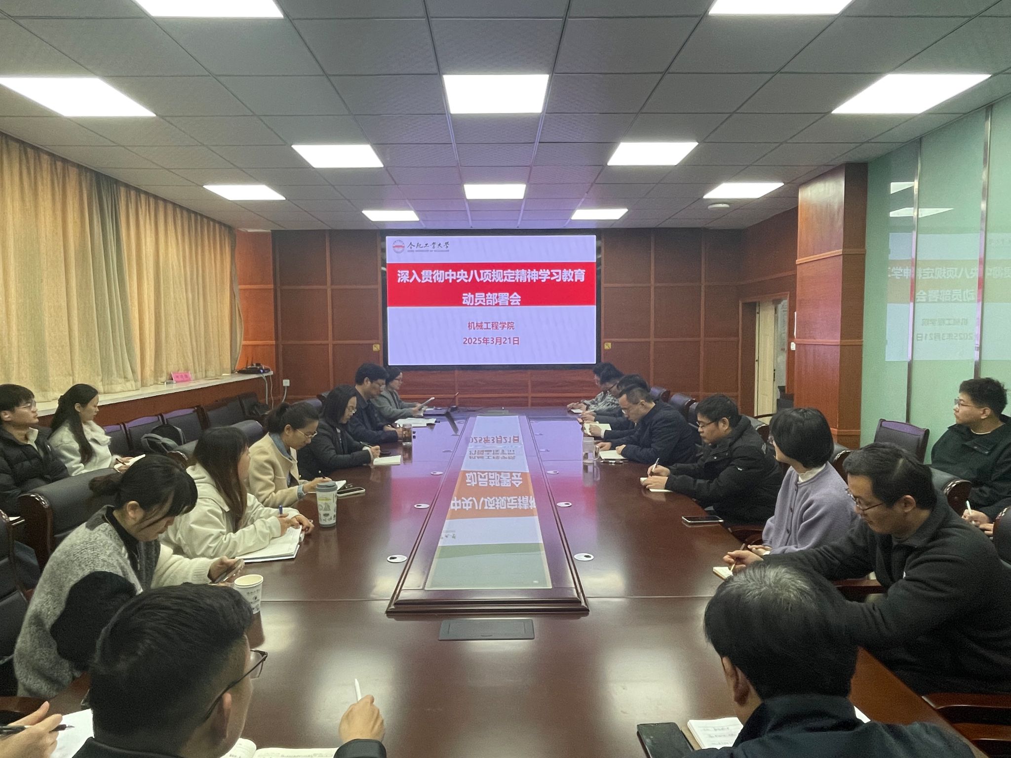 党委在格物楼308会议室召开深入贯彻中央八项规定精神学习教育工作动员部署会,传达学习中央党的建设工作领导小组会议精神和中共中央办公厅、教育部党组关于开展深入贯彻中央八项规定精神学习教育有关要求、学校党委部署深入贯彻中央八项规定精神学习教育工作会议精神,全面部署学院深入贯彻中央八项规定精神学习教育工作。学院党委书记祖磊作动员部署讲话,学院党委副书记兼纪委书记蔡伟伟主持会议,学院处级领导干部、科级干部、党委委员、纪委委员、党支部书记和支部纪检委员参加动员部署会。